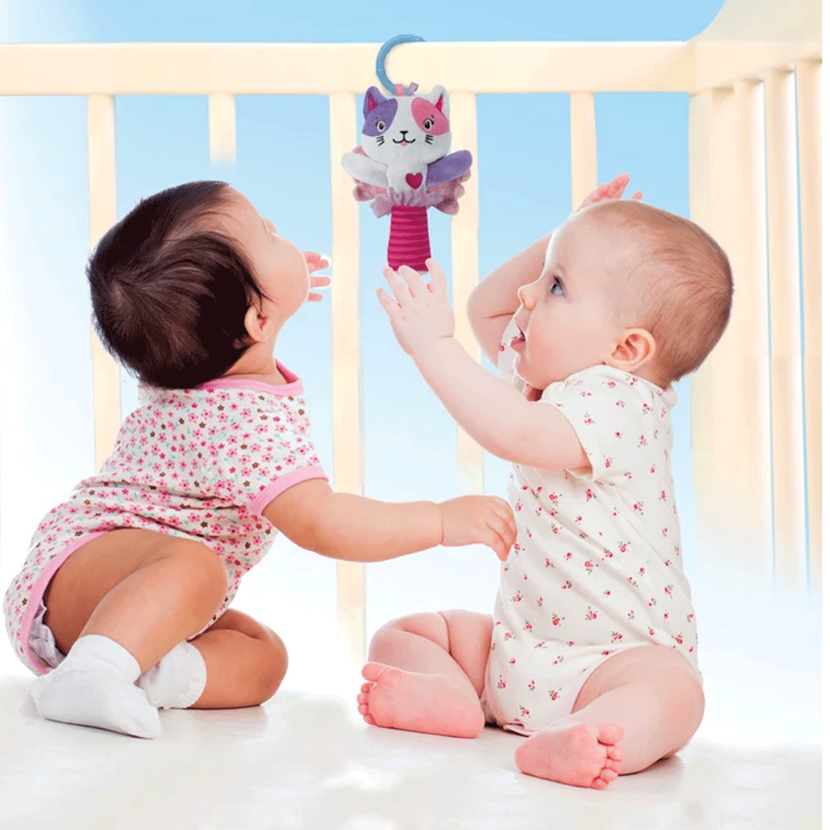 Küçükleri çok duyusal unsurlarla eğlendirmek için yumuşak, çıngıraklı bir kedicik.