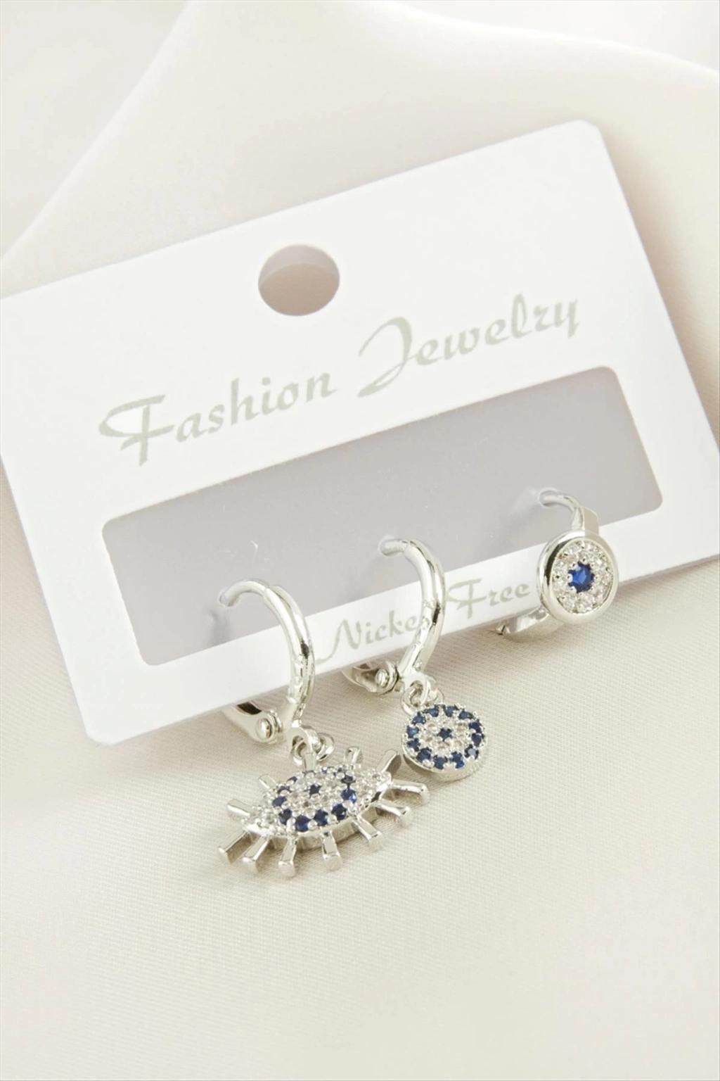 ÇOK SATAN 3 Adet Göz Nazar Zirkon Taşlı Küpe