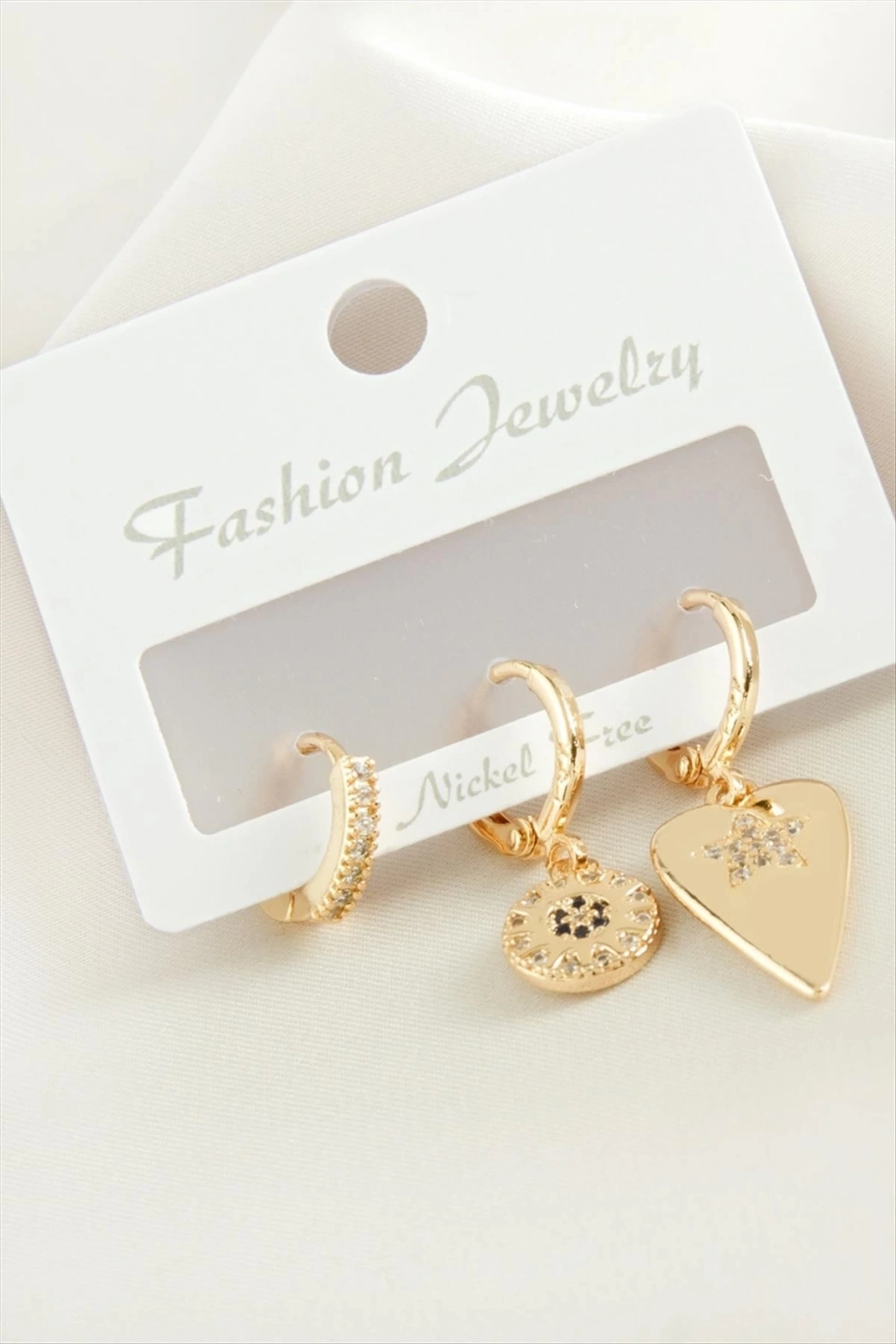 ÇOK SATAN 3 Adet Kalp Zirkon Taşlı Küpe