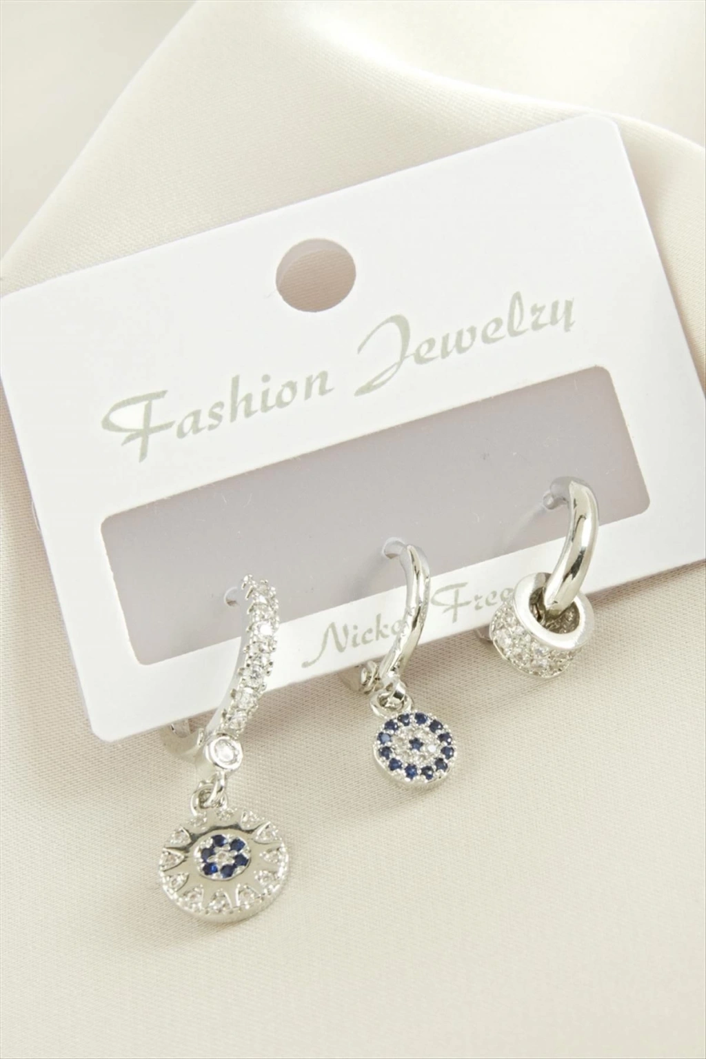 • 3 Adet Nazar Zirkon Taşlı Küpe