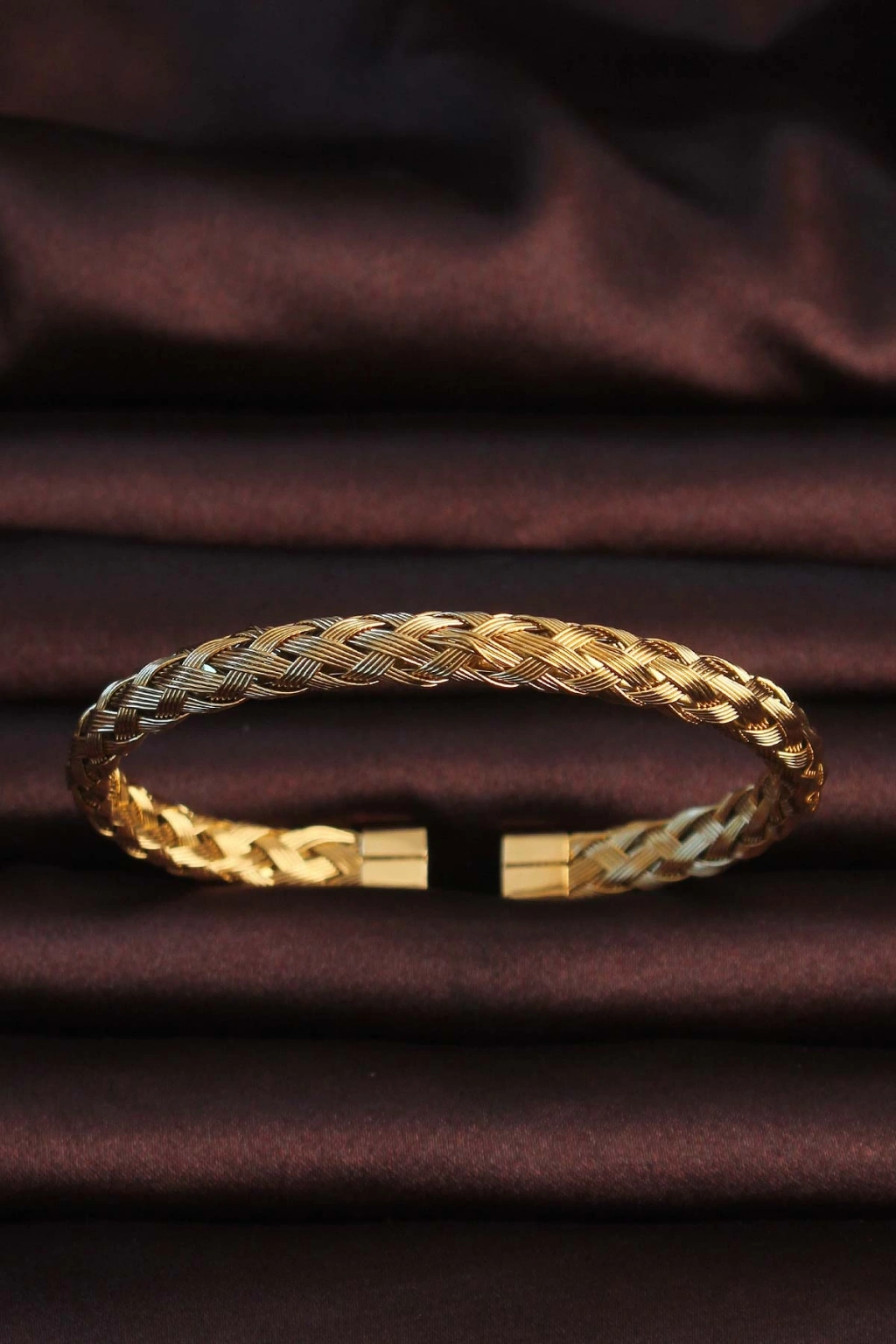 ÇOK SATAN 316L Çelik Altın Renk Kalın Yassı Örgü Model Erkek Bileklik