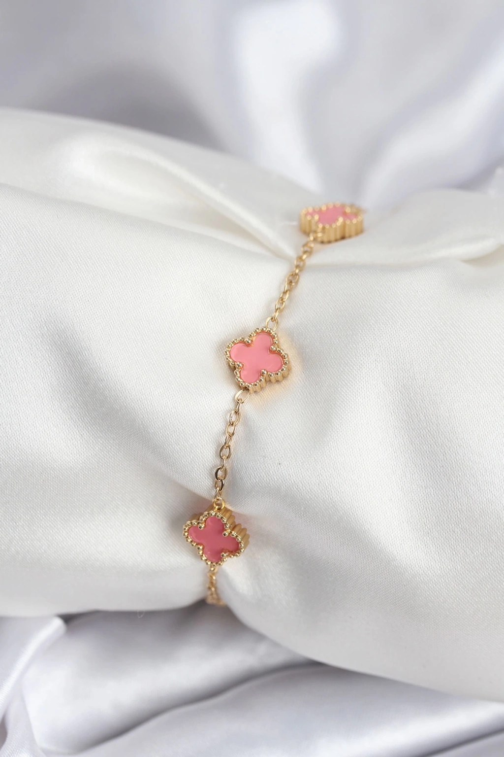 ÇOK SATAN 316L Çelik Gold Renk Pembe Baby Boy Yonca Kadın Bileklik