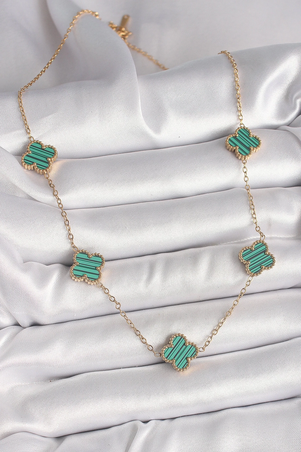 ÇOK SATAN 316L Çelik Gold Renk Zincir Yeşil Yonca Model Kadın Kolye