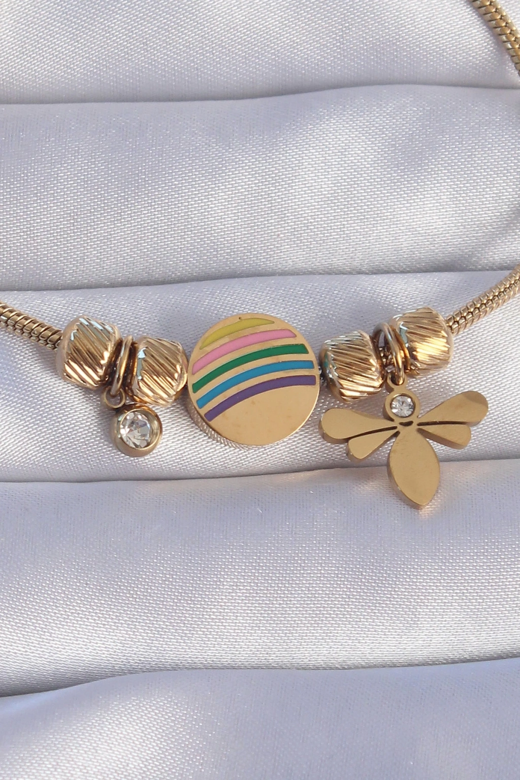 ÇOK SATAN 316L Çelik Gold Renk Zirkon Taşlı Gökkuşağı Tasarımlı Yusufçuk Bileklik
