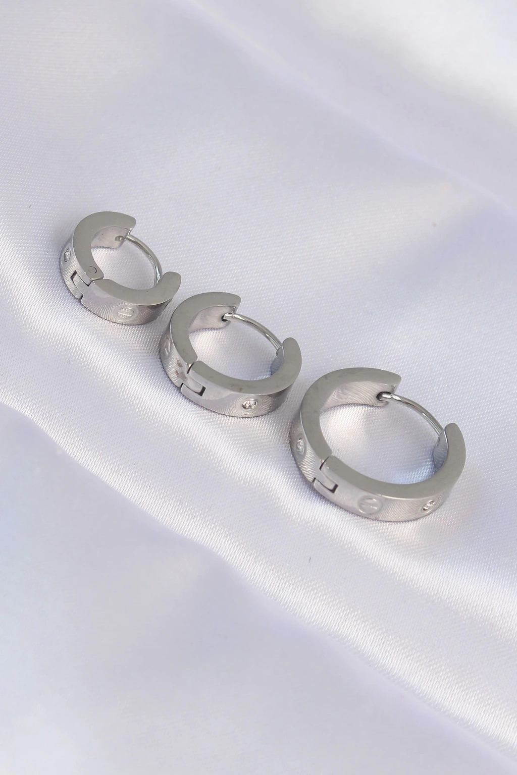 ÇOK SATAN 316L Çelik Gümüş Renk Zirkon Taşlı Model 3lü Halka Küpe