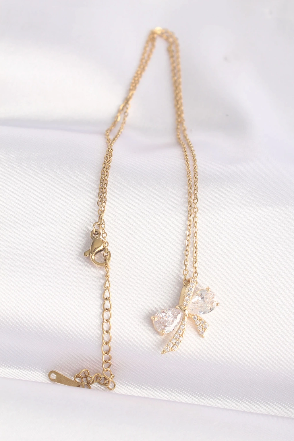 ÇOK SATAN 316L Çelik Zincir Altın Renk Zirkon Taşlı Fiyonk Kolye