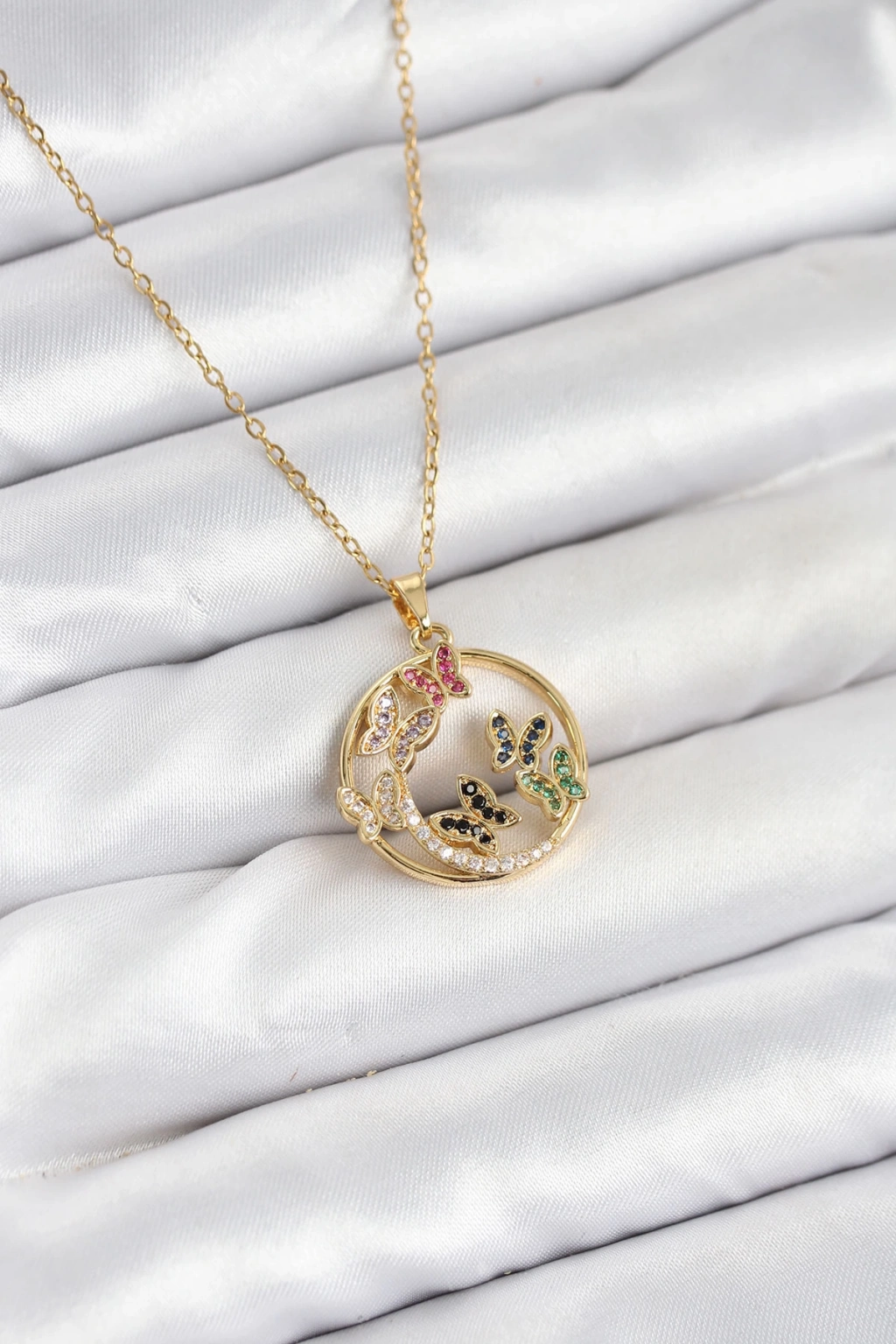 ÇOK SATAN 316L Çelik Zincir Gold Renk Zirkon Taşlı Kelebekli Kadın Kolye
