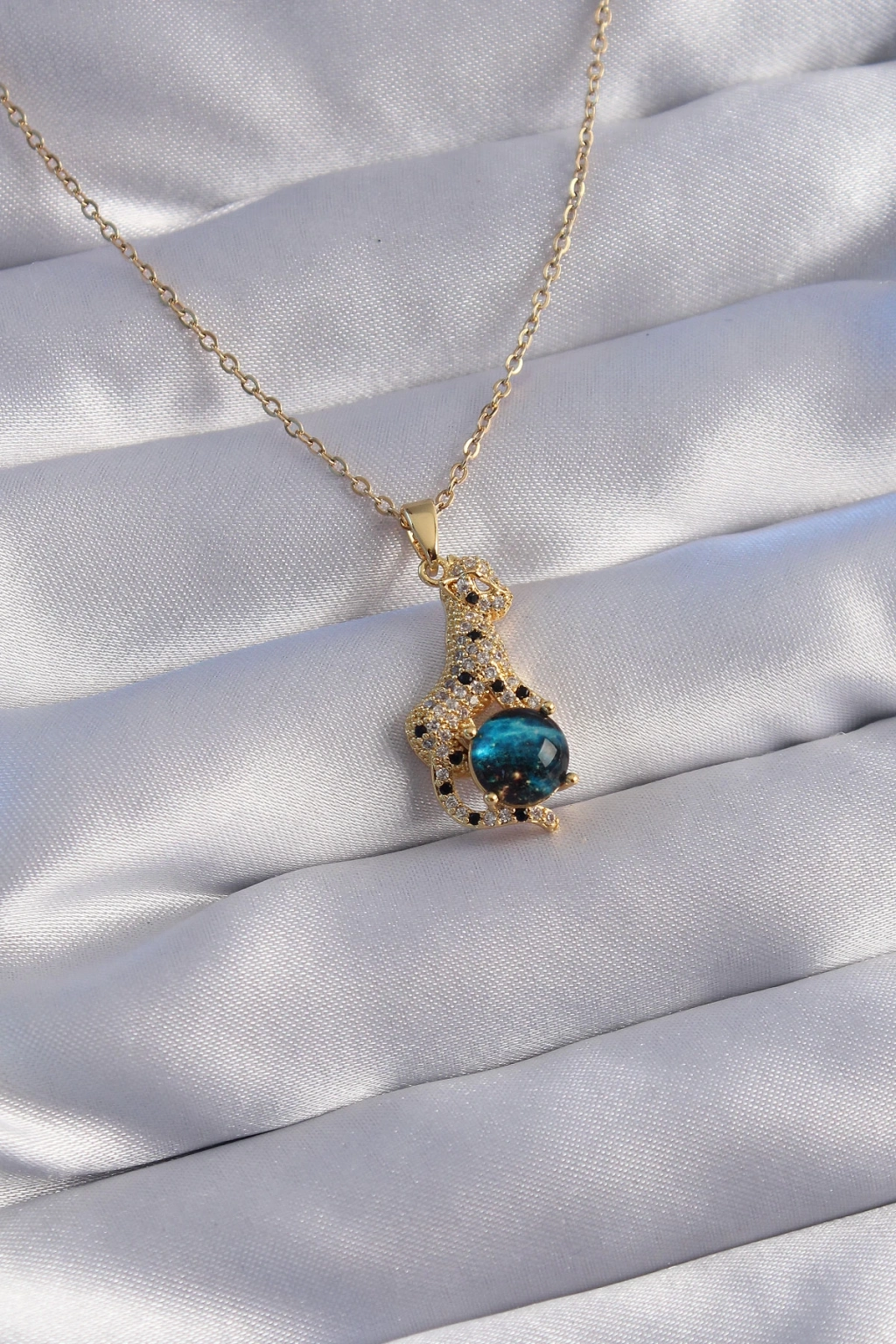 ÇOK SATAN 316L Çelik Zincir Gold Renk Zirkon Taşlı Panter Figürlü Gezegen Kolye