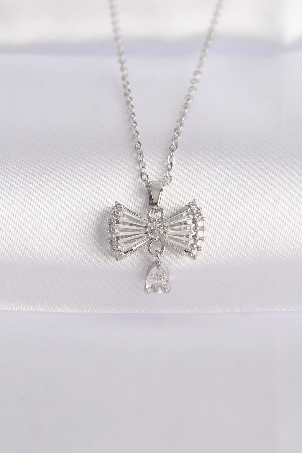 ÇOK SATAN 316L Çelik Zincir Gümüş Renk Zirkon Taşlı Kalp Detay Fiyonk Kolye