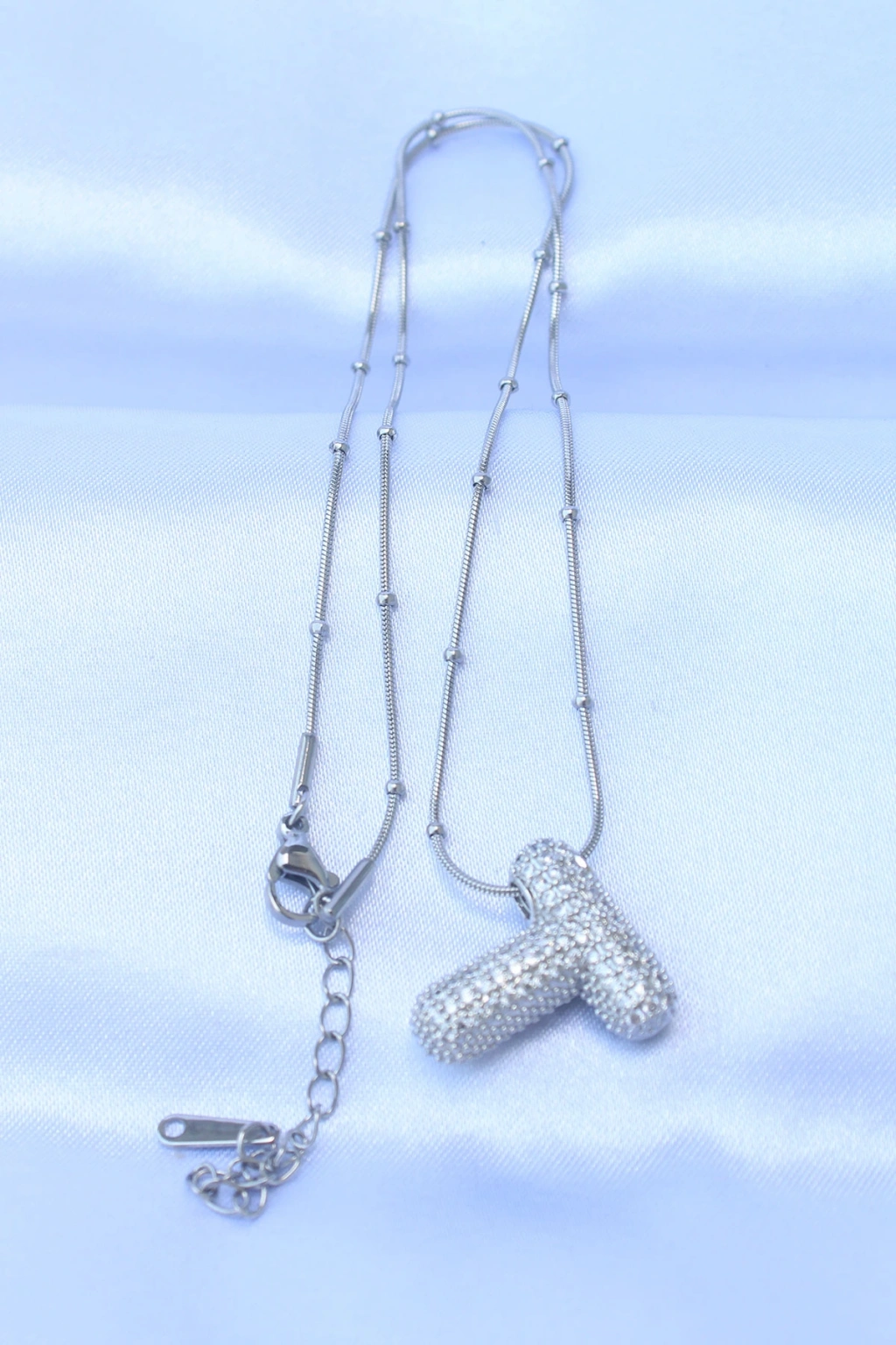 ÇOK SATAN 316L Çelik Zincirli Zirkon Taşlı T Harfli Gümüş Renk Bubble Kolye