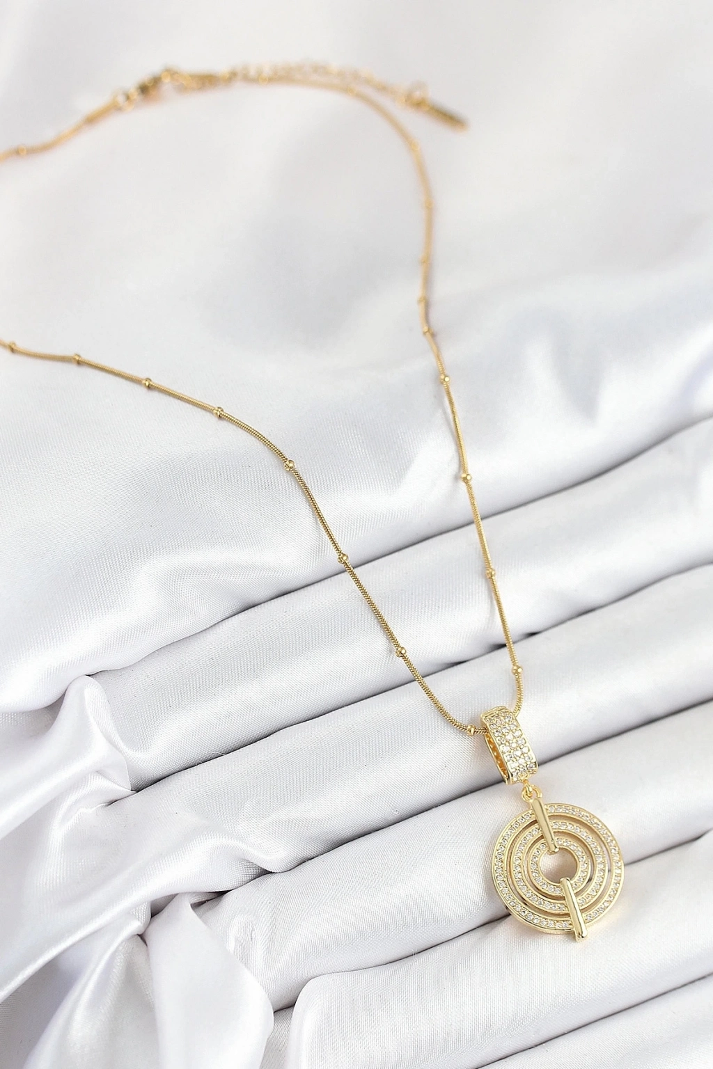 316L Çelik Zirkon Taşlı Çember Model Gold Renk Kadın Kolye