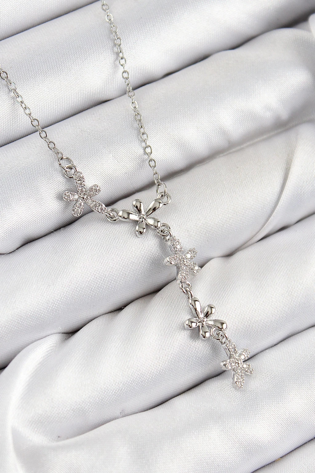 ÇOK SATAN 316L Çelik Zirkon Taşlı Çiçek Model Gümüş Renk Kadın Kolye