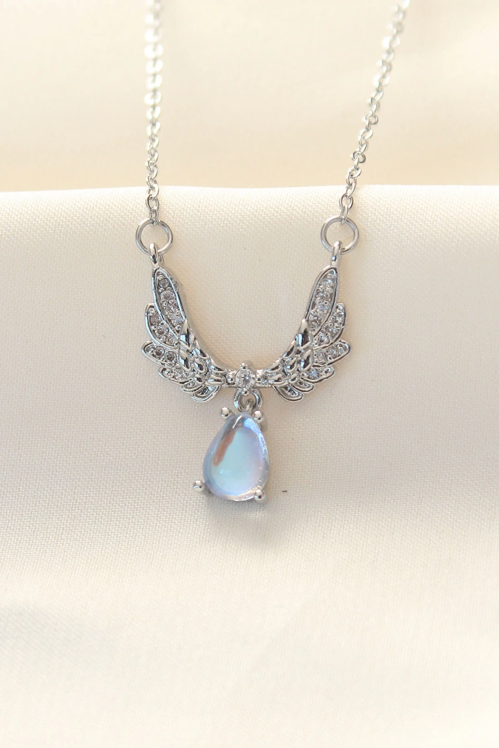 ÇOK SATAN 316L Zinciri Çelik Zirkon Taşlı Gümüş Renk Kanatlı Damla Kolye