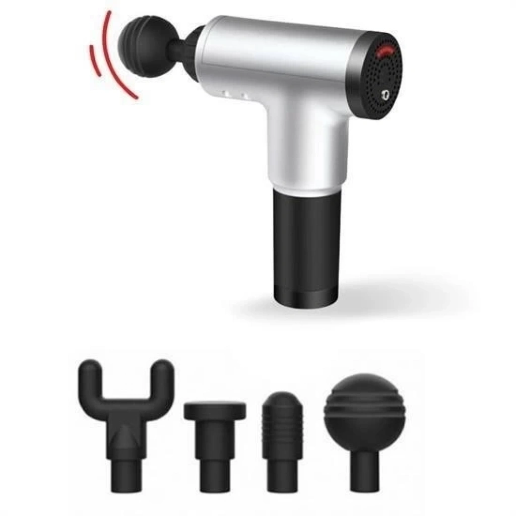 Şarjlı 4 Farklı Başlıklı 6 Seviye Hız Ayarlı Vurmalı Kas Rahatlatma Yoğurmalı Titreşimli Masaj Tabancası Aleti