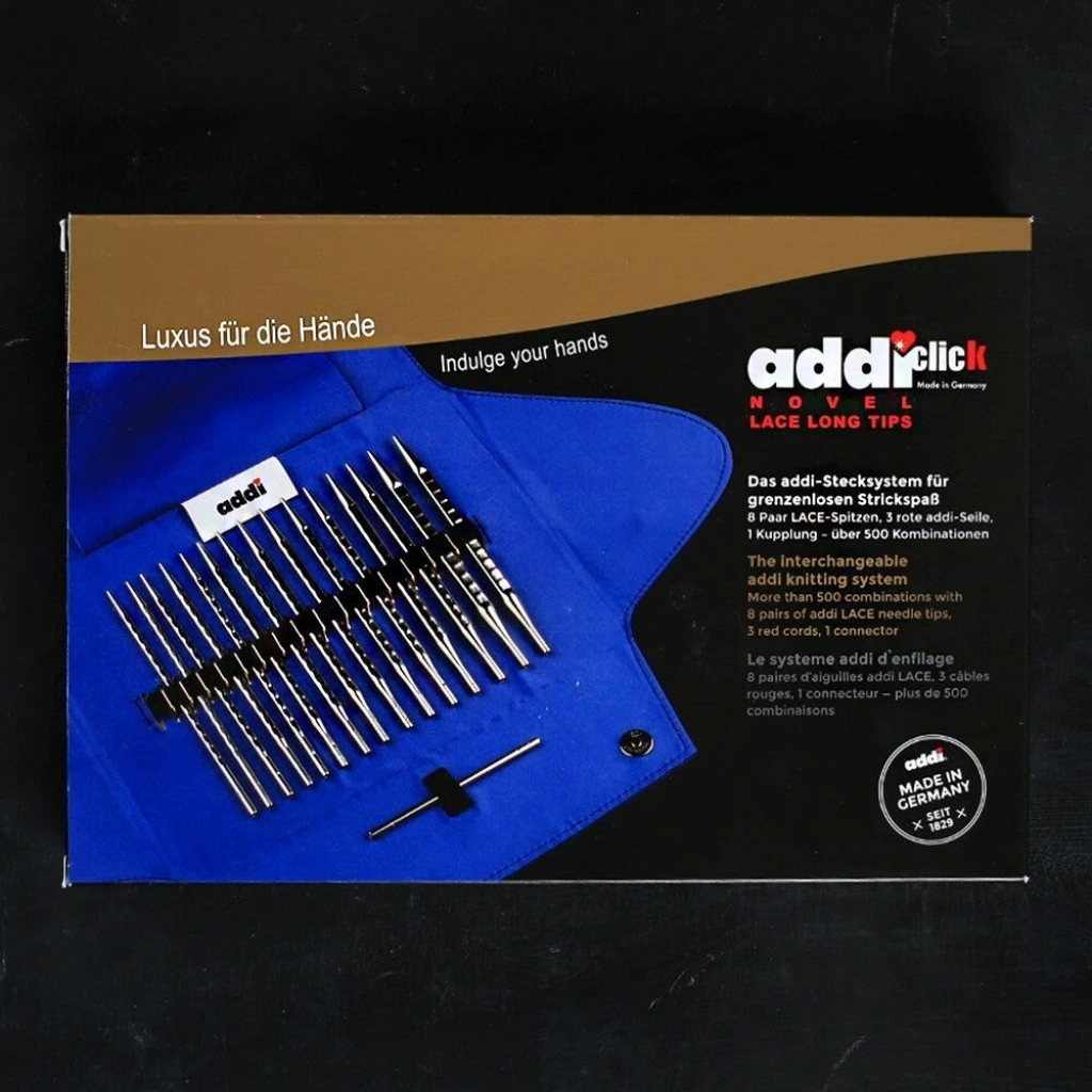Alman üretici ADDI, Yeni ADDI Click NOVEL Lace long koleksiyonunu örgüseverler için üretti. AddiNOVEL, AddiClick değiştirilebilir sistemine ek olarak, yuvarlatılmış kenarları ve yapılandırılmış yüzeyi olan ergonomik bir kare tasarıma sahiptir. Bu set, tüm örgüleriniz için mükemmel bir seçimdir.