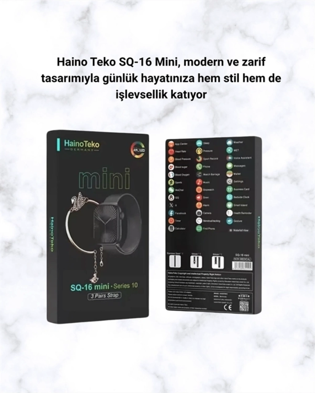 SQ-16 Mini Series 10, tüm akıllı telefonlarla uyumlu yapısı ve kullanıcı dostu arayüzü ile öne çıkar. Manyetik şarj kablosu sayesinde kolay şarj imkanı sunar. Su sıçramalarına karşı dayanıklıdır ancak yüzme veya duş sırasında kullanılması önerilmez. Günlük yaşamda rahatlıkla kullanılabilecek pratik bir akıllı saat deneyimi sunar.