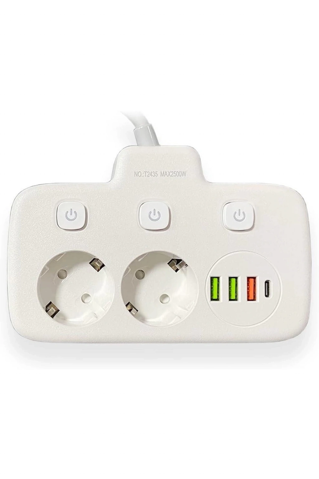 • Akım Korumalı 2’li Ayrı Anahtarlı Priz, 2x Priz, 3x Usb, 1x Type-c, 2 Mt Kablo, Hızlı Şarj