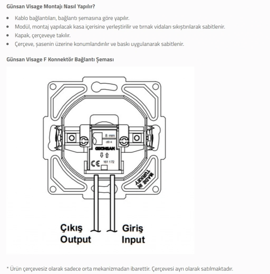 Günsan Gümüş TV Prizi (Geçişli-Sonlu) Visage Seri, TV yayını için gerekli olan karasal yayın anten çıkışı için kullanılır.