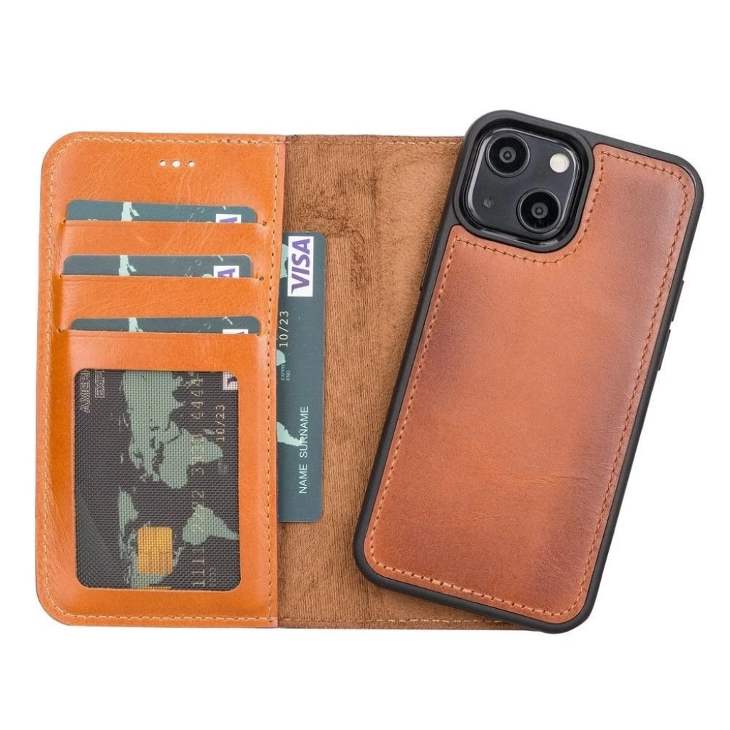 ÇOK SATAN Apple iPhone 13 Mini Uyumlu Deri Cüzdanlı Kılıf RST2EF Taba