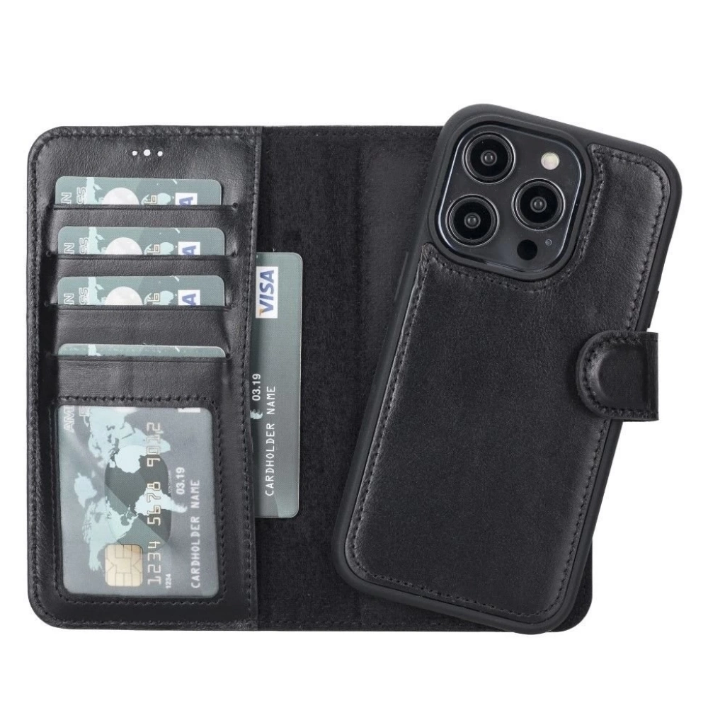 ÇOK SATAN Apple iPhone 14 Pro Uyumlu Deri Cüzdanlı Kılıf MWWN RST1 Siyah