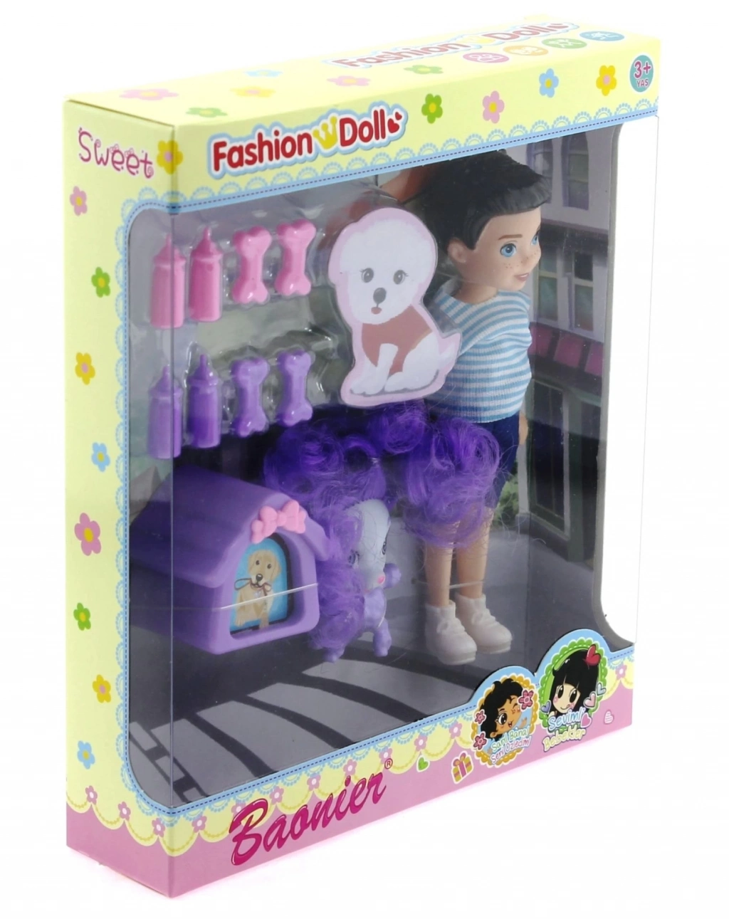 Set içerisinde 1 bebek, 1 köpek, 8 aksesuar , 1 köpek evi mevcuttur.