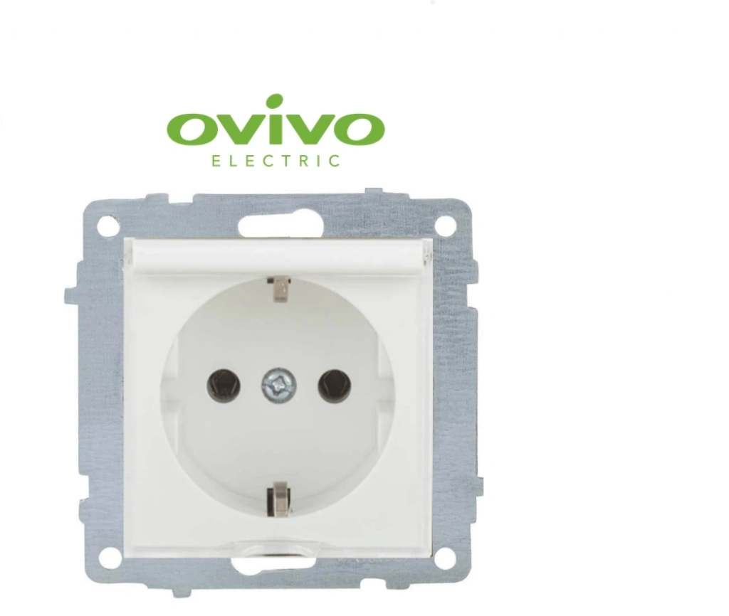 Ovivo Beyaz Topraklı Kapaklı Priz Çerçevesiz