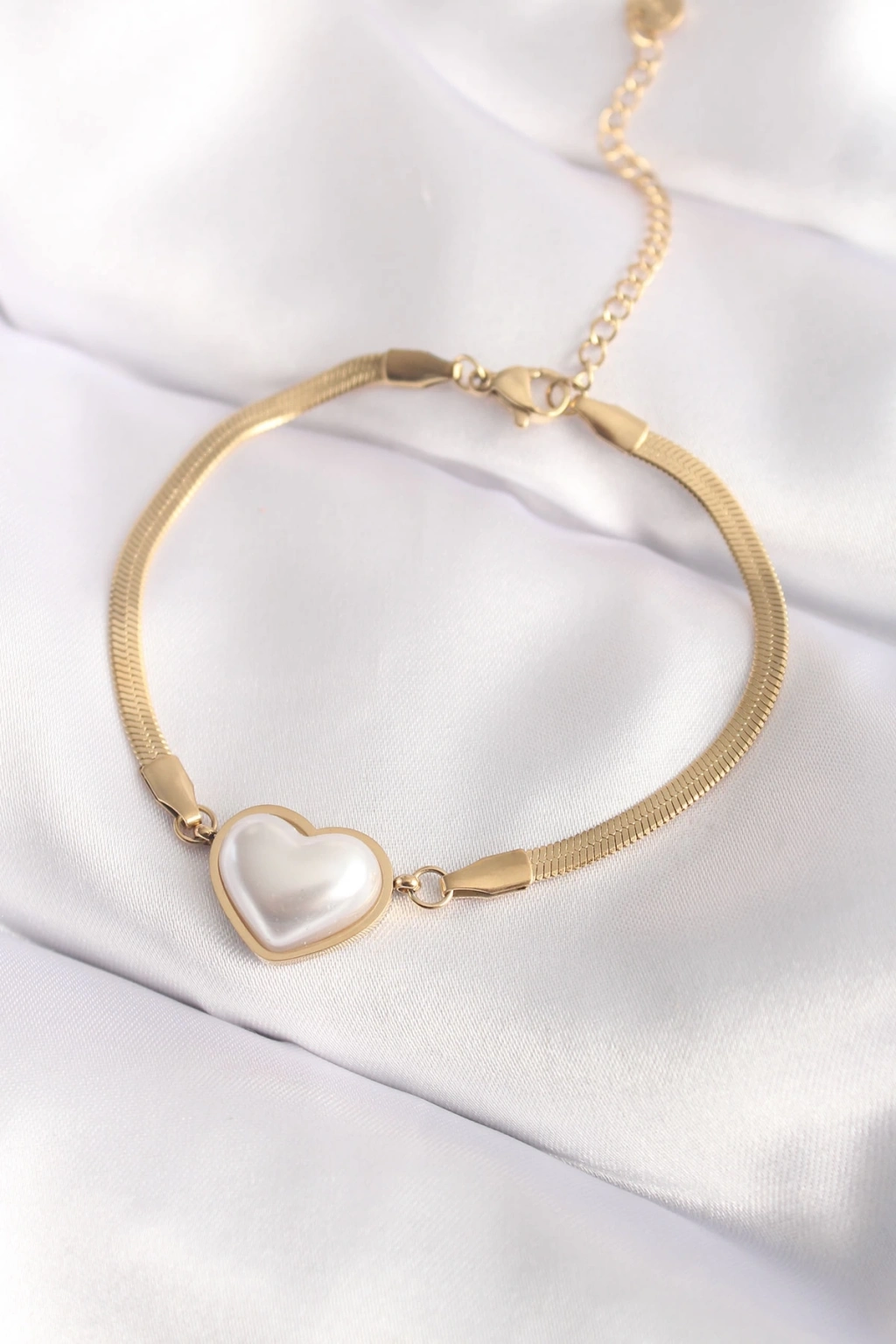 BFS 316L Çelik Gold Renk Bombeli Kalp Kadın Bileklik