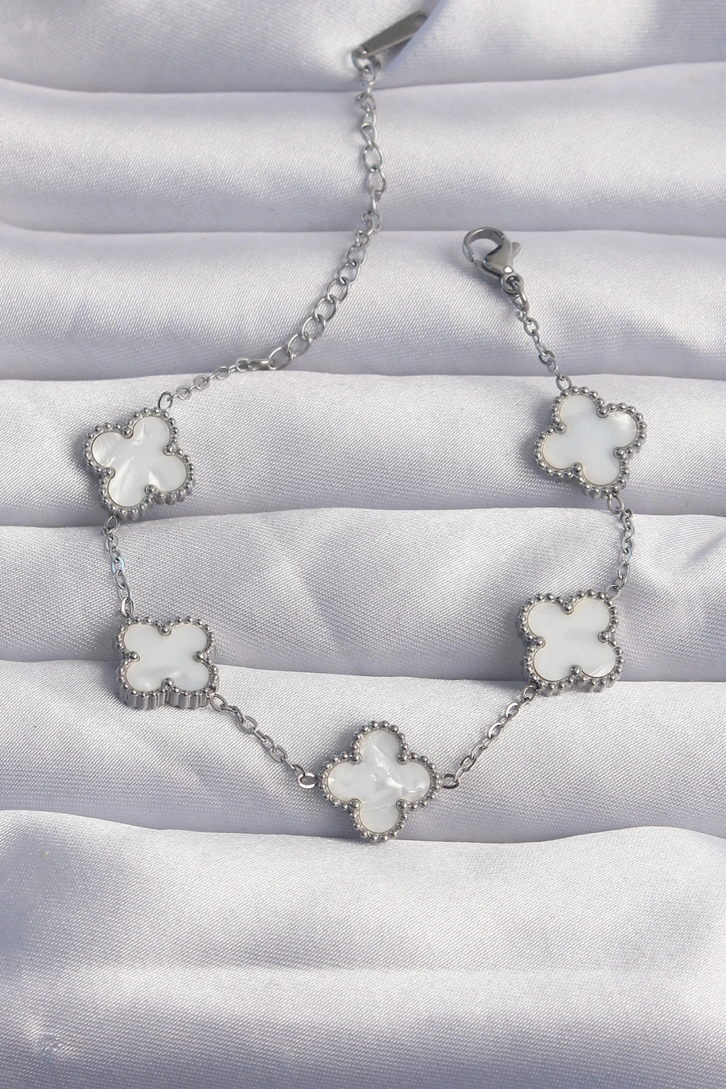 BFS 316L Çelik Gümüş Renk Beyaz Sedefli Yonca Bileklik