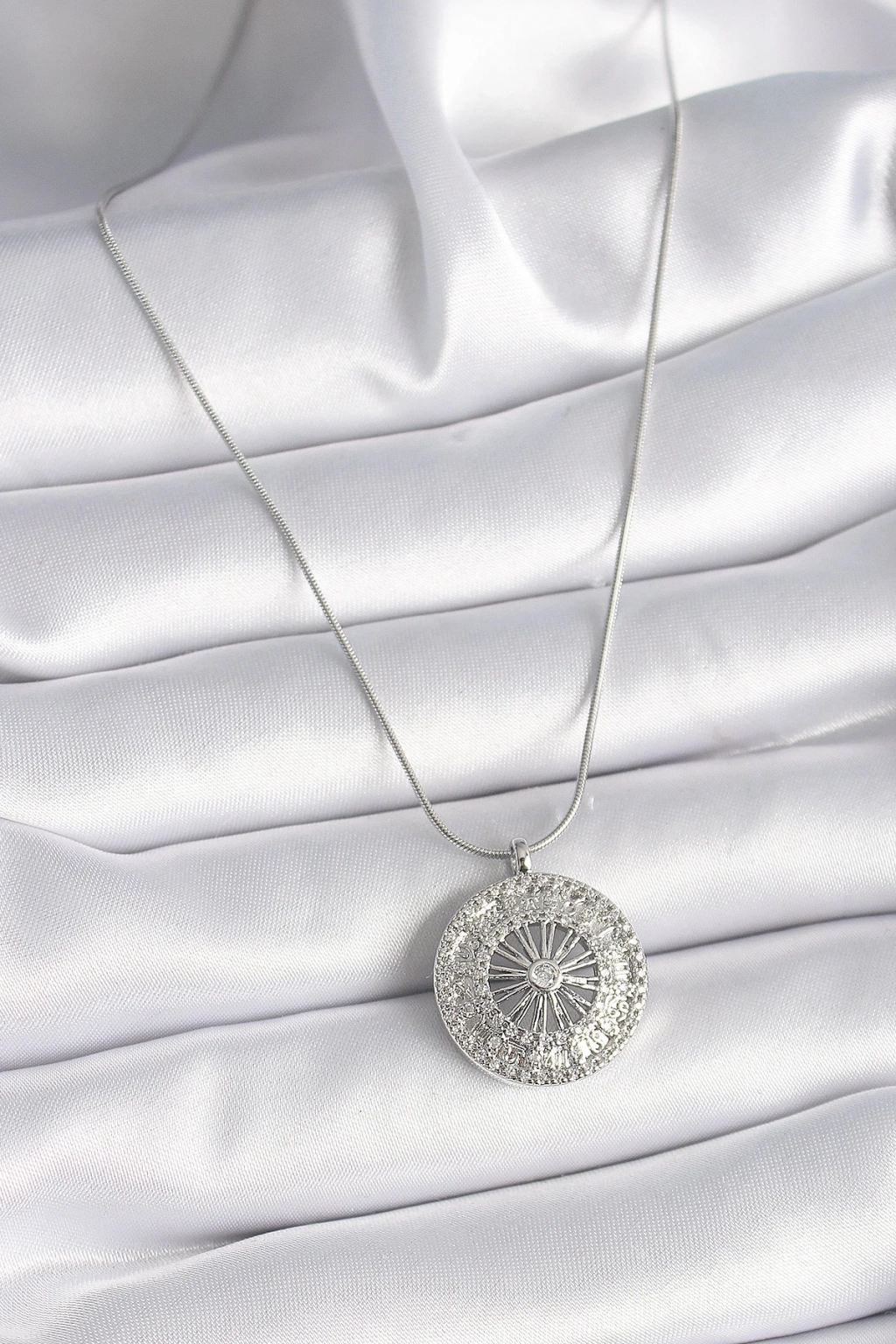 BFS 316L Çelik Gümüş Renk Zirkon Taşlı 12 Burç Madalyon Model Kadın Kolye