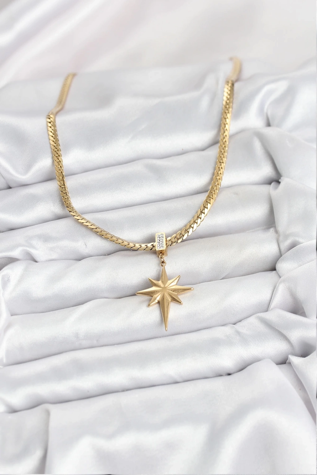 BFS 316L Çelik Zincir Gold Renk Kutup Yıldızı Model Kadın Kolye