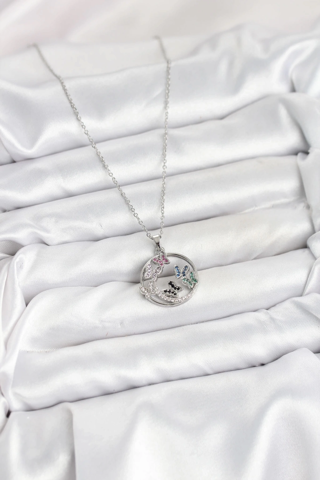 ÇOK SATAN BFS 316L Çelik Zincir Gümüş Renk Zirkon Taşlı Kelebekli Kadın Kolye