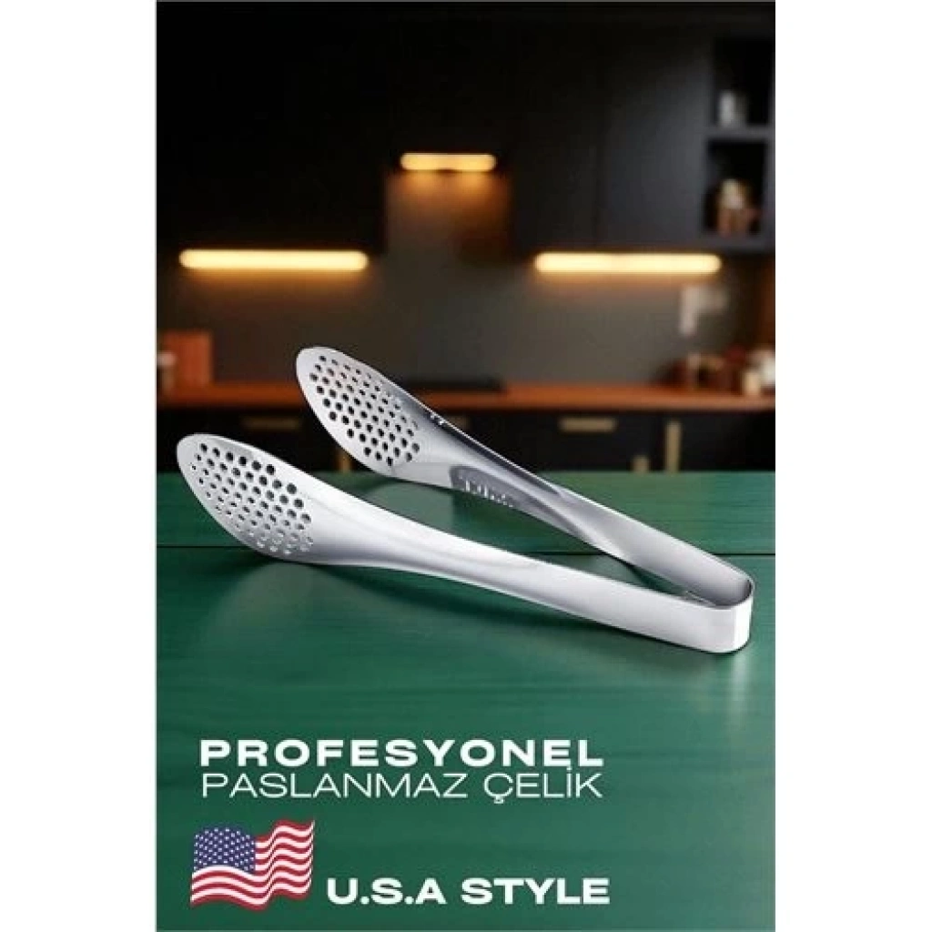 ? U.S.A Style Paslanmaz Çelik Delikli Maşa | Profesyonel Mutfak Gereci | Süzme & Servis İçin İdeal