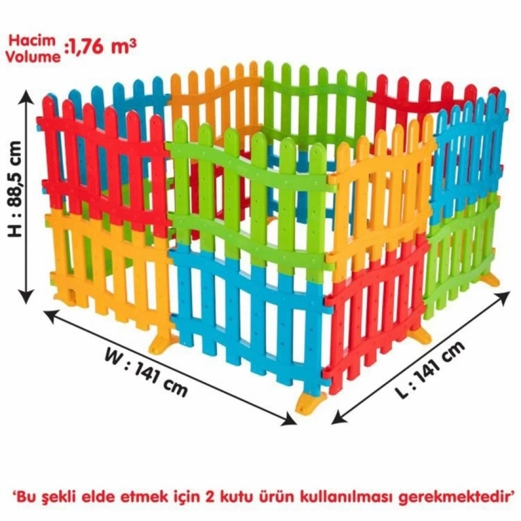 Yeni enjeksiyon tasarım çit -8 adet çit -9 adet sabitleme ayağı -Değişik ve Kolay Montaj Şekilleri -Çoklu Kullanım Özelliği -Oyun Parkı -Top Havuzu olarak kullanılabilir -Bir Alanı Bölme Özelliği -Ürün üst üste eklenerek yükseltilebilir -Bahçe Çiti Özelliği -Şık Görünüş Ve Ergonomik Tasarım