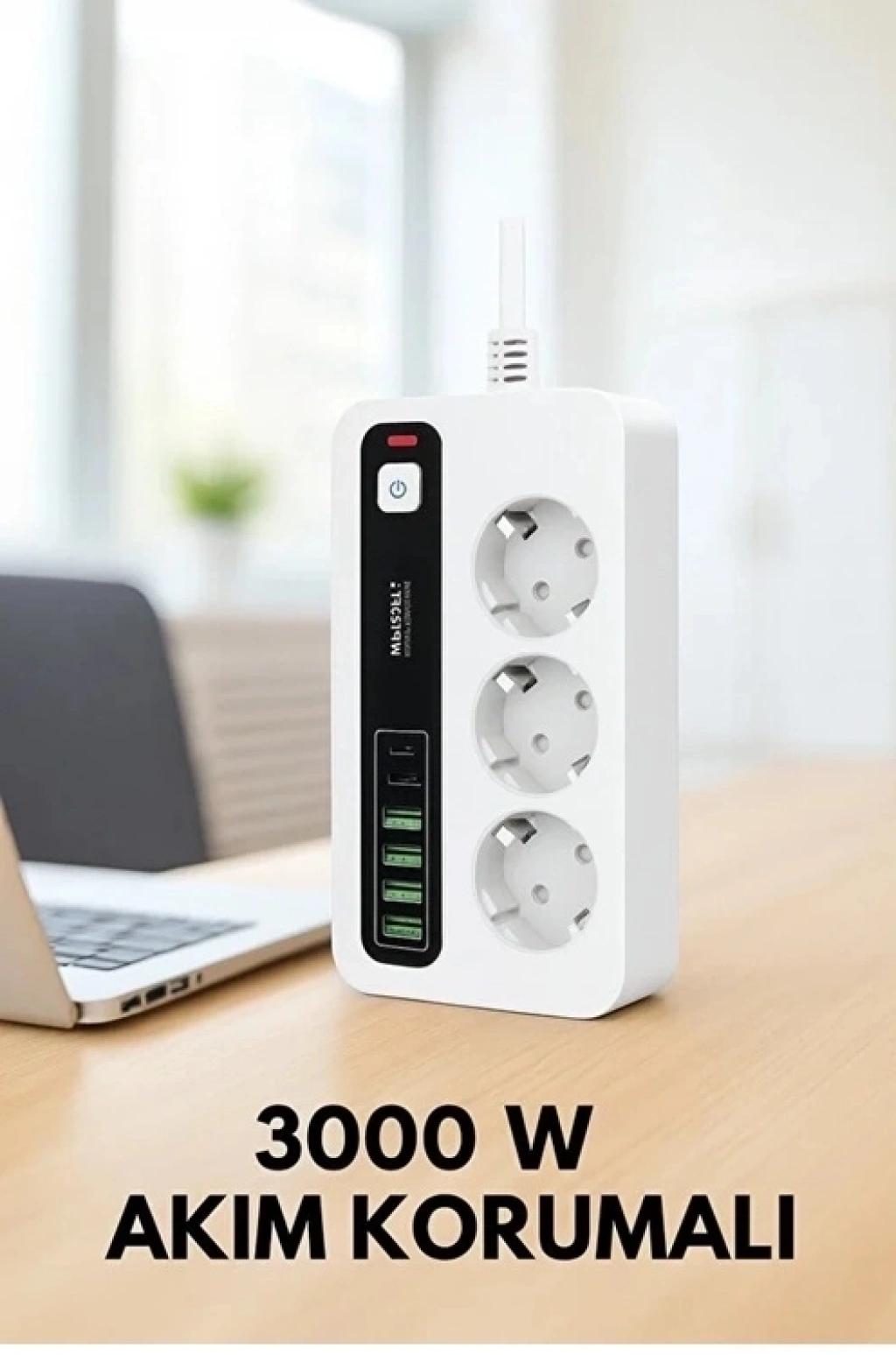 ÇOK SATAN BFS Termal Akım Korumalı Isıya Dayanıklı 3’lü Priz 3x Usb 1x Type-c