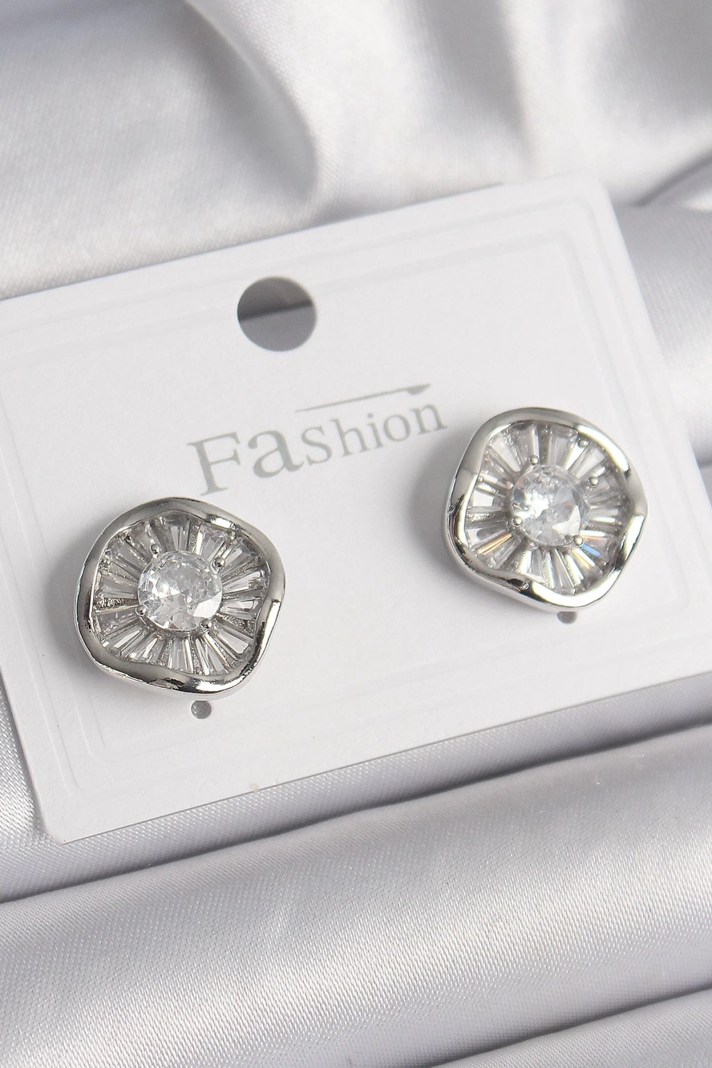 • BFS Pirinç Gümüş Renk Zirkon Taşlı Yonca Model Kadın Küpe