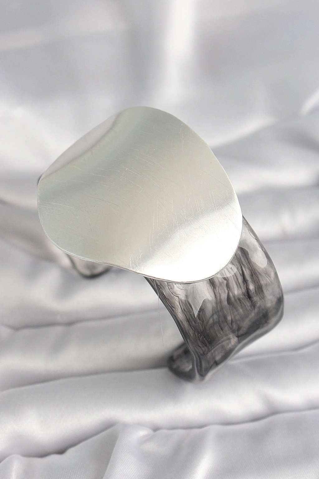BFS Siyah Mermer Desen Akrilik Pilastik Gümüş Plaka Model Vintage Kadın Bilezik