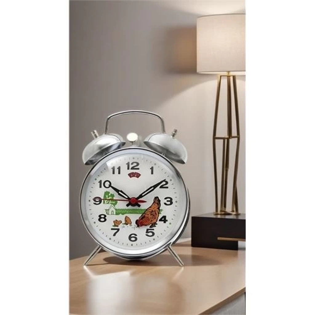 Retro vintage tasarımı ile kadrandaki tavuk, saniyeyle orantılı yemini yer .