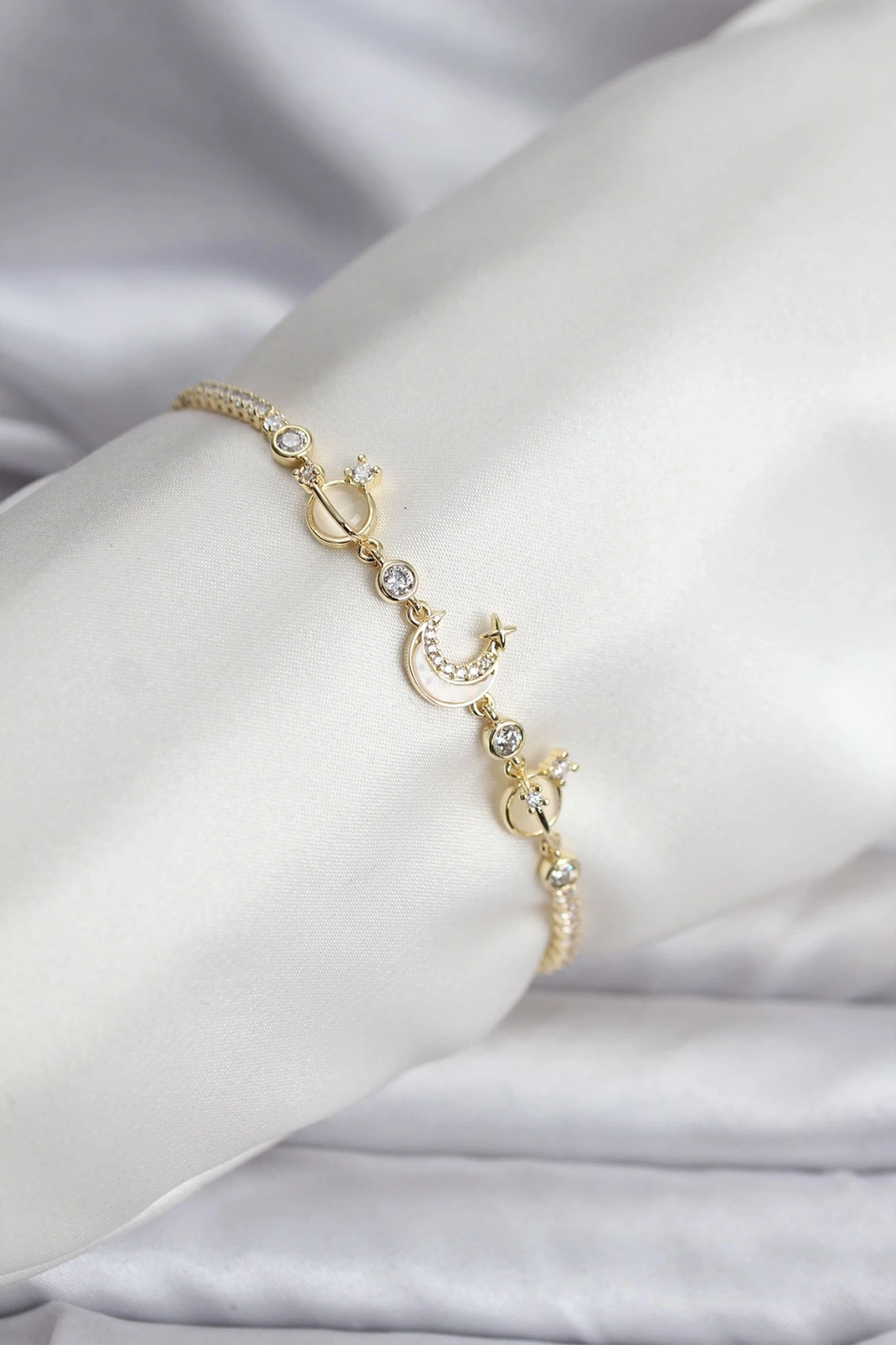 Charmlı Model Zirkon Taşlı Gold Renk Su Yolu Kadın Bileklik