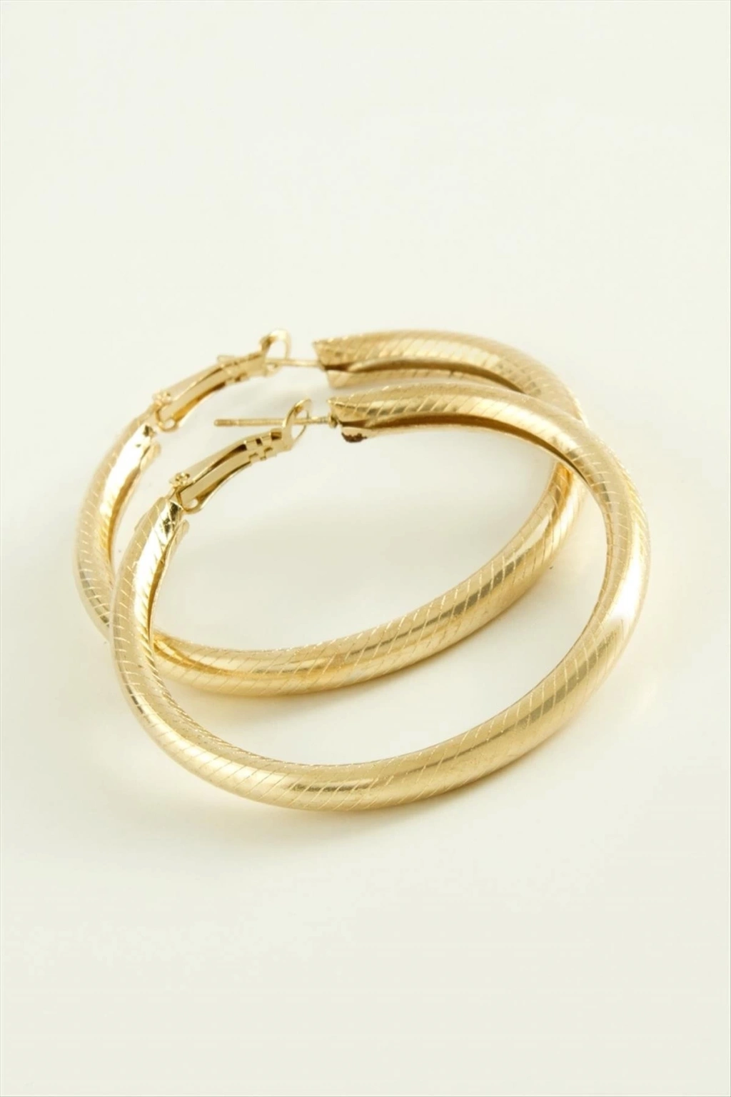ÇOK SATAN Çizgili Boru Halka Küpe 4,5 cm