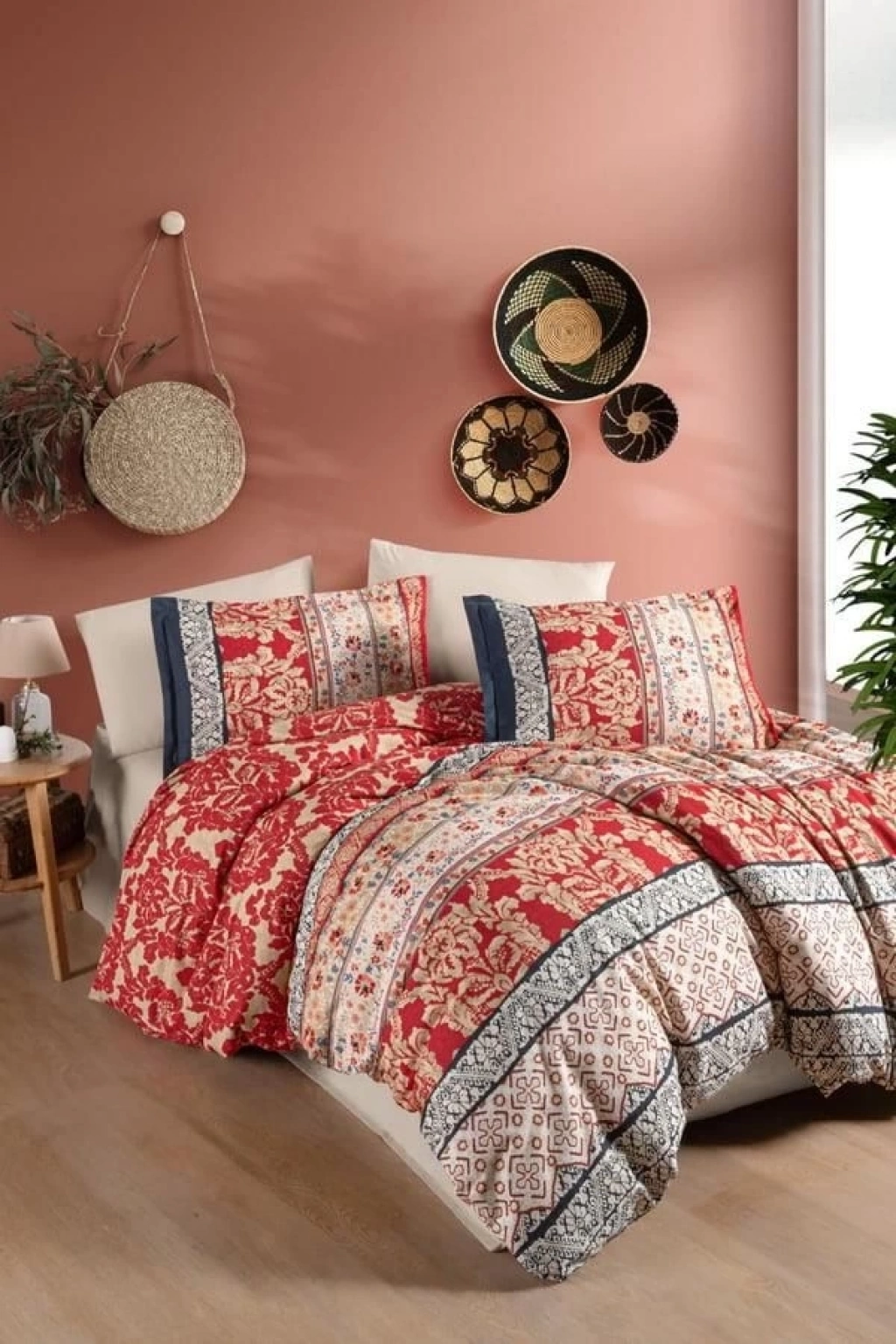 ÇOK SATAN Clasy Ranforce Nevresim Takımı Çift Kişilik Miza V1 Kırmızı