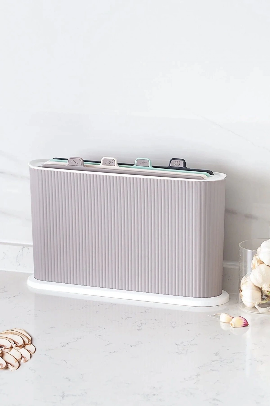- Yer Tasarruflu ve Şık Stand: Kompakt ve dikey standı sayesinde kesme tahtalarınızı düzenli bir şekilde saklayabilir, mutfak tezgahınızda minimum yer kaplarken modern bir görünüm yaratır. Hava akımı sayesinde tahtaların daha hızlı kurumasına da yardımcı olur.