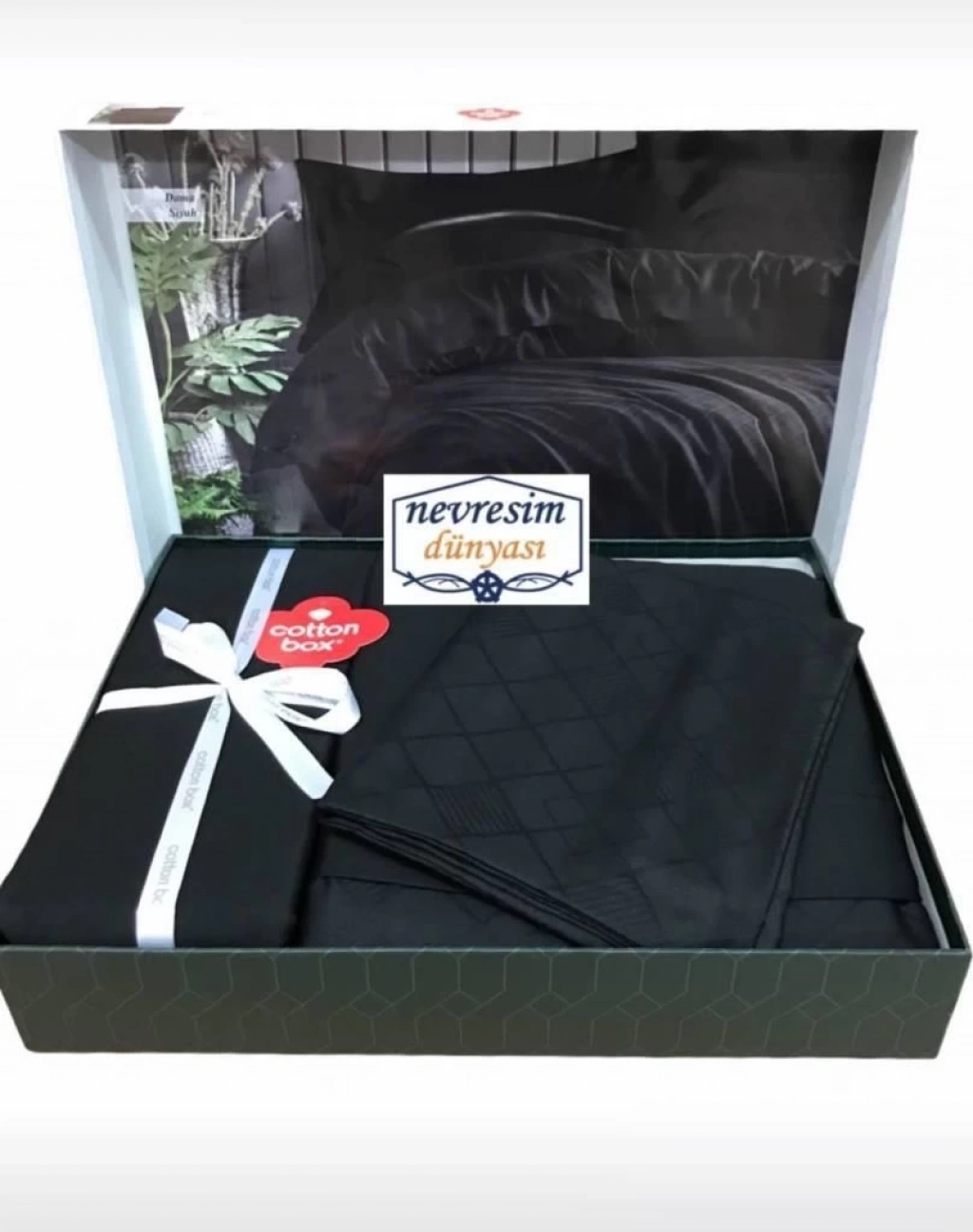 ÇOK SATAN Cotton Box Çift Kişilik Jakarlı Saten Nevresim Takımı Dama Siyah