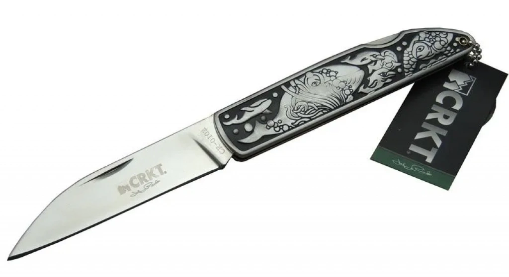 CRKT CR 0102 kamp çakısı, hem şık balık desenli metal sapı hem de dayanıklı yapısıyla dikkat çeken, çok yönlü bir araçtır. 20 cm'lik uzun bıçağıyla hem günlük kullanım hem de outdoor aktiviteler için idealdir.