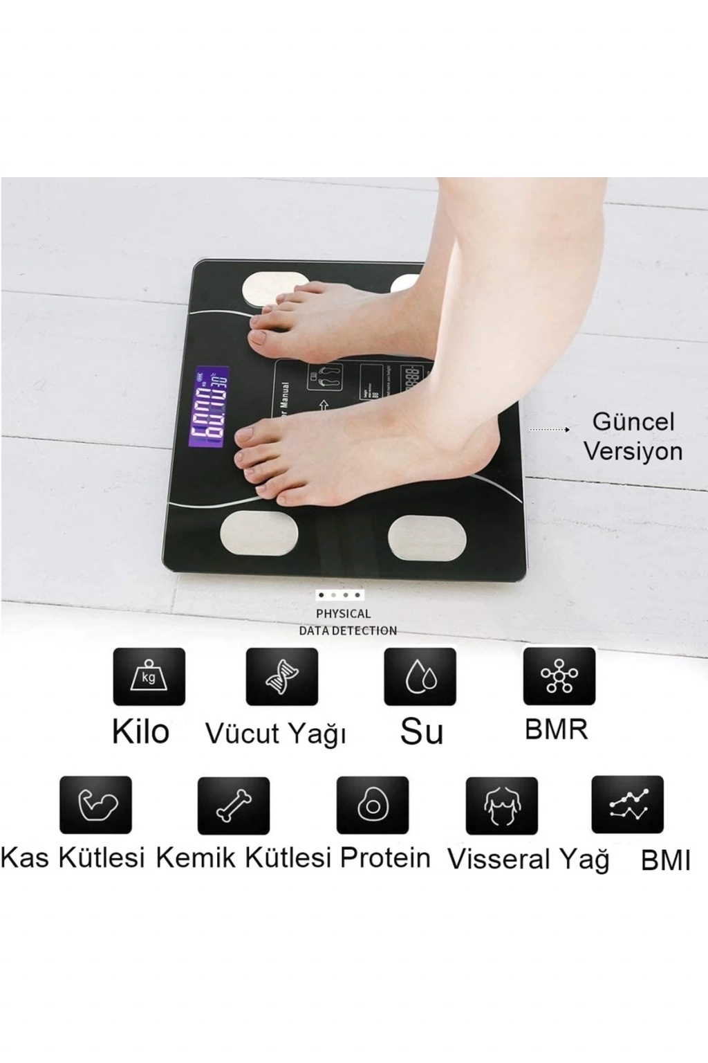 ÇOK SATAN Dijital Baskül Yağ Su Kas Vücut Kitle Endeksi Kilo Ölçer Pilli Bluetoothlu