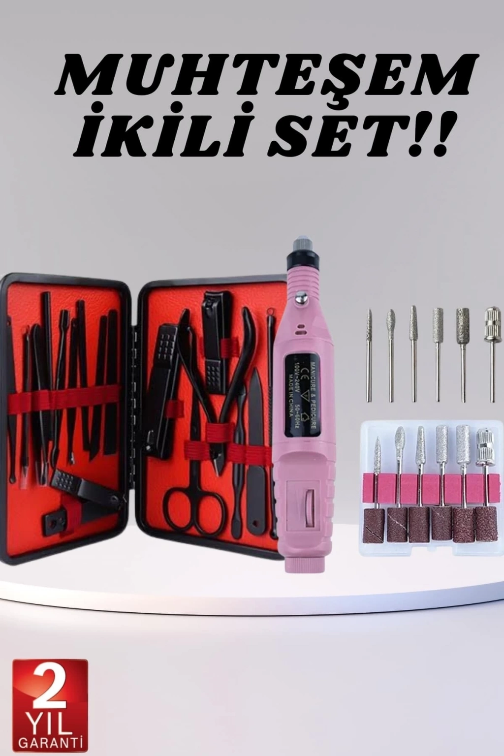ÇOK SATAN Elektrikli Manikür Pedikür Seti İkili Set 17 Parça Tırnak Bakımı Nasır Temizleme Tırnak Şekillendirme
