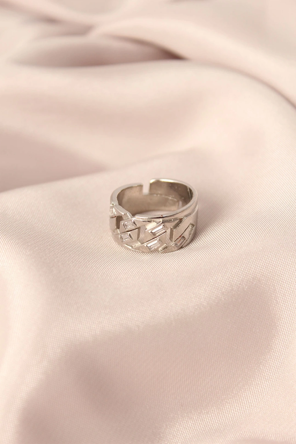 ÇOK SATAN Gümüş Renk Metal Taşlı Model Ayarlanabilir Kadın Yüzük