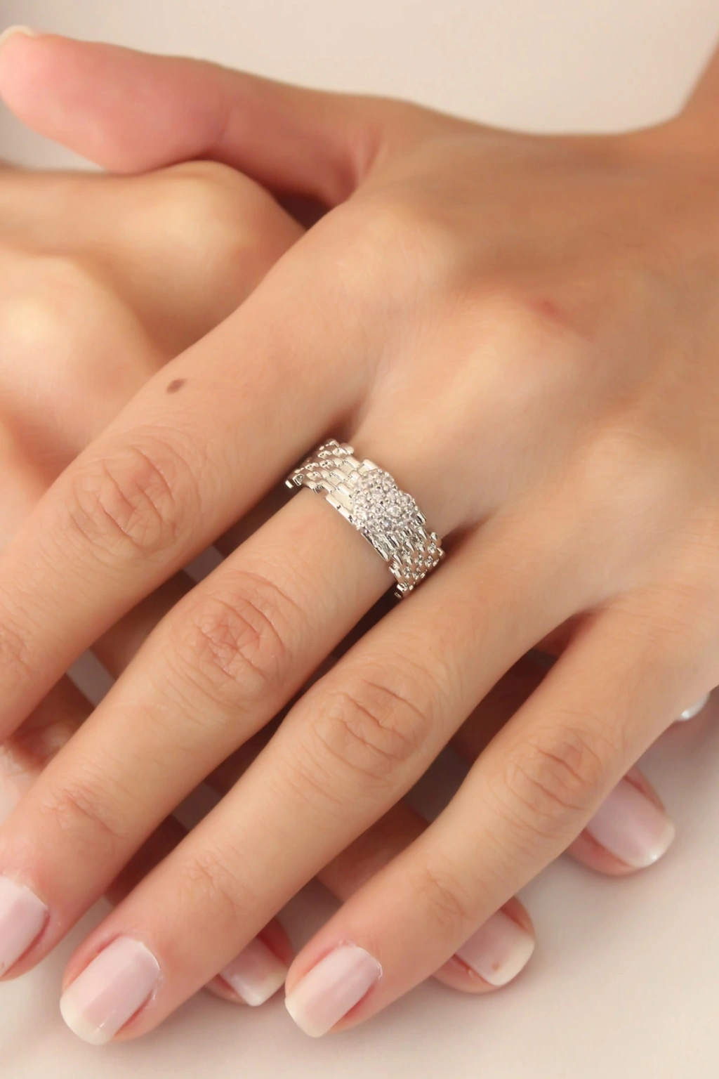 ÇOK SATAN Gümüş Renk Zirkon Taşlı Kalpli Ayarlanabilir Kadın Yüzük