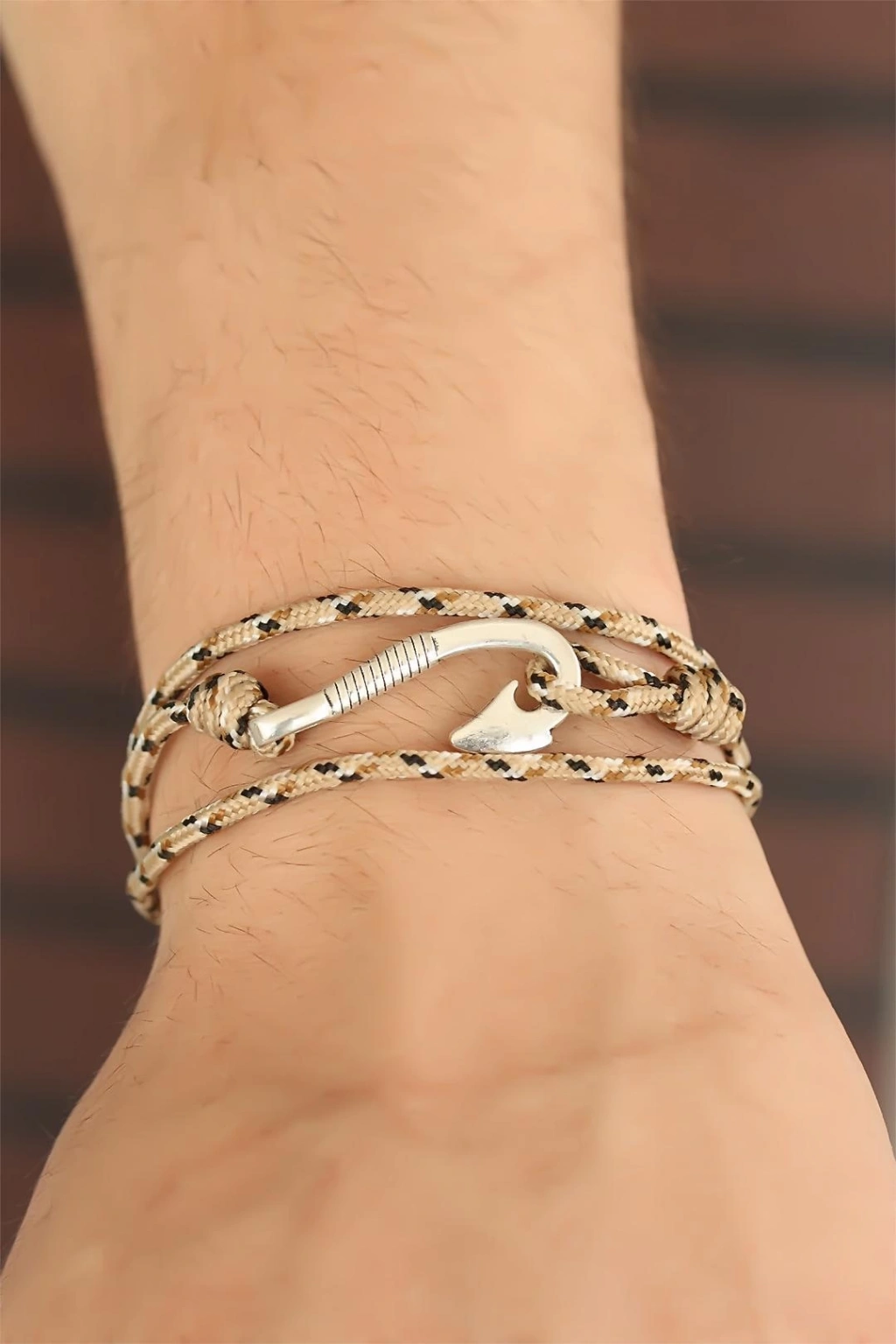 Trendleri yakından takip eden beyler için Krem Renk Çizgi Desenli Metal Kancalı Erkek Bileklik uygun bir seçim olacak.