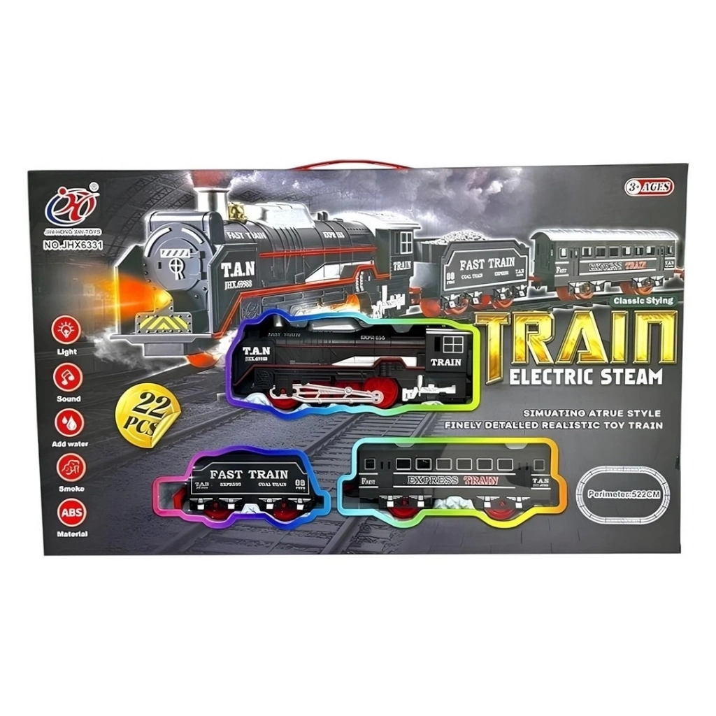 Bu oyuncak seti, detaylı parçalarıyla çocuğunuzu büyüleyecek! Setin içerisinde lokomotif, 1 yük vagonu ve 1 yolcu vagonu