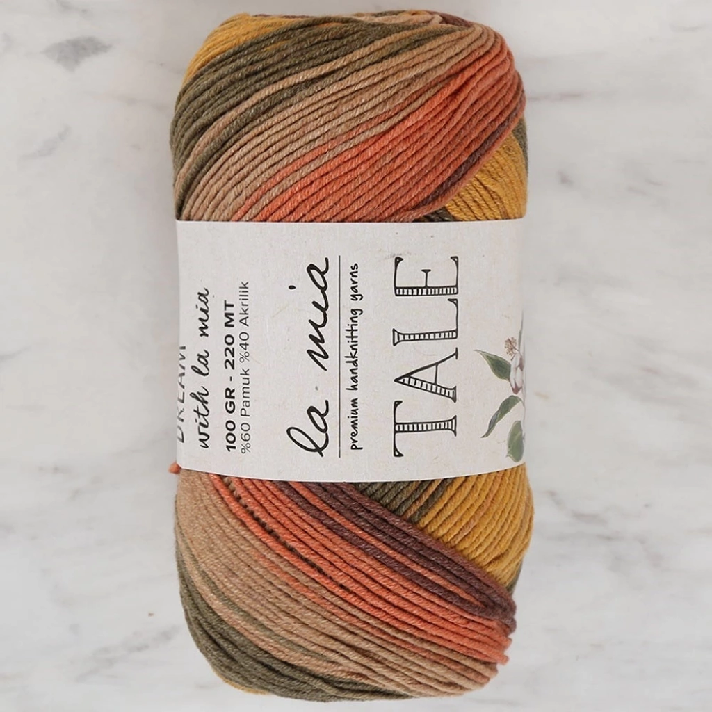 La Mia Markası'na ait yepyeni ürün TALE ile hayalini yarat.Geçişli renk tonlarının hakim olduğu bu seri ile havanız değişecek. Yumuşak ve kolay tüylenmeyen yapısı, güzel renk tonları ile örgüleriniz artık daha gösterişli. Tüm örgü modellerinizde güvenle tercih edebilirsiniz.